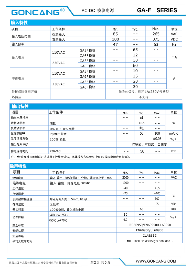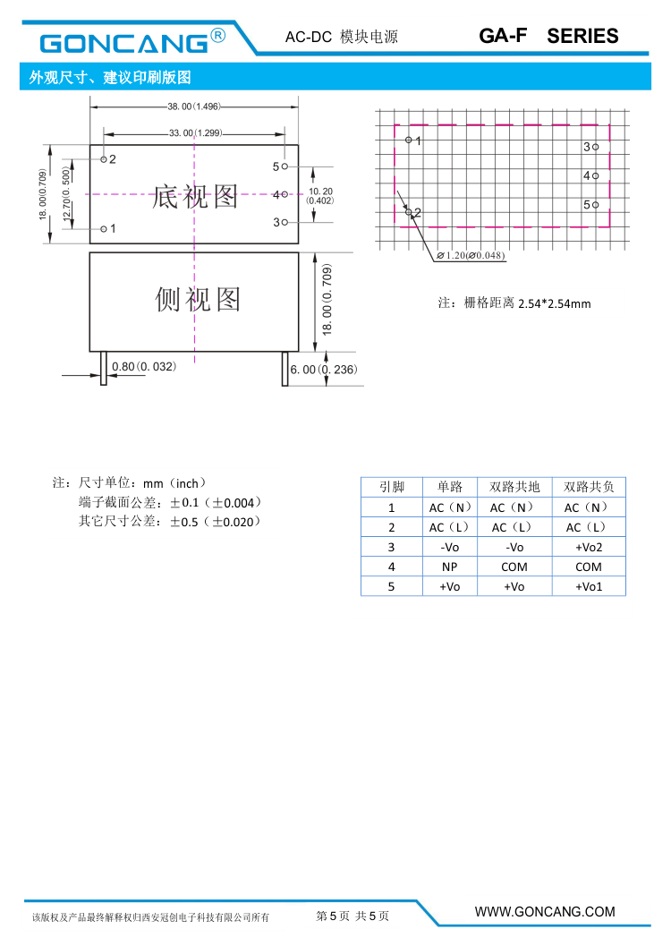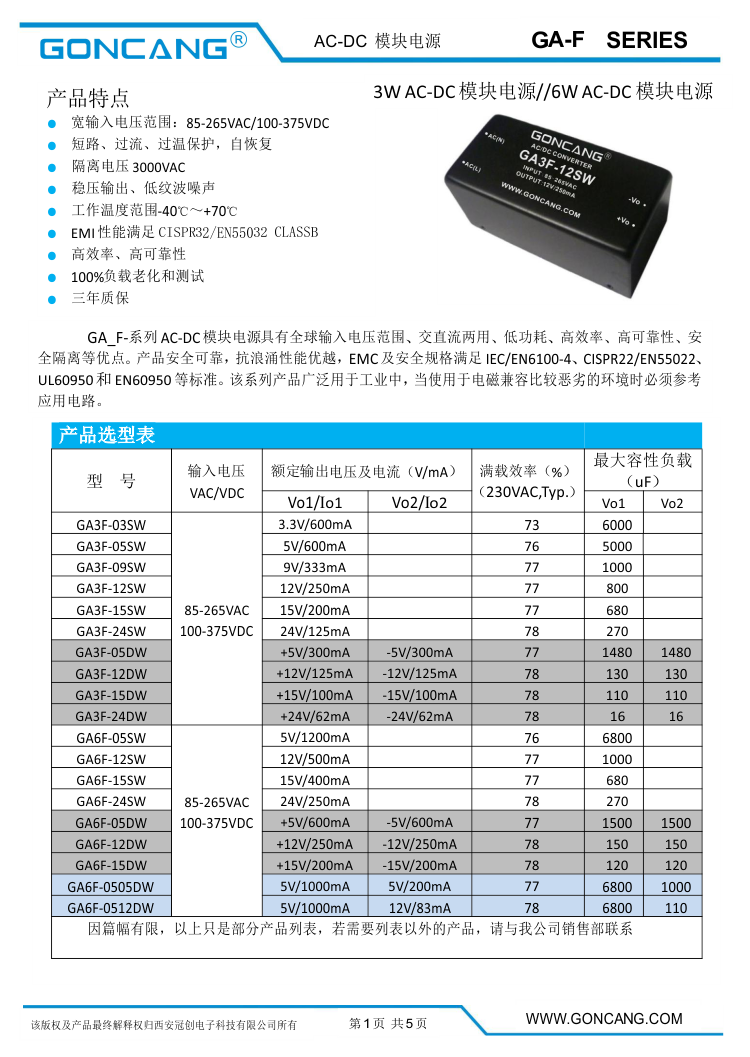 ●功率:3-6W ●输入范围:85-265Vac ●输出电压:3.3V 5V 12V 15V 24V 48V等 ●输出路数:单路 双路 ●防护:防震 防尘 放盐雾 ●EMI性能满足CISPR32/EN55032 CLASSB ●高效率、高可靠性 ●尺寸:38.00×18.00×18.00mm ●三年质保