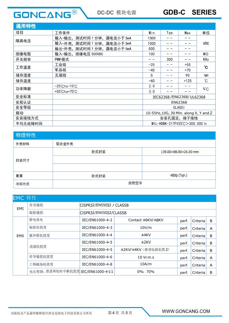 ●宽电压输入范围:2:1 ●输入欠压、输出过压、短路、过流保护 ●隔离电压1500VDC ●输出电压:3.3V 5V 12V 15V 24V 48V等 ●裸机满足CISPR22/EN55022 CLASS A ●输入内置滤波器 ●高效率、高可靠性 ●端子输出,六面金属屏蔽 ●尺寸:139.00×88.00×26.00mm ●三年质保